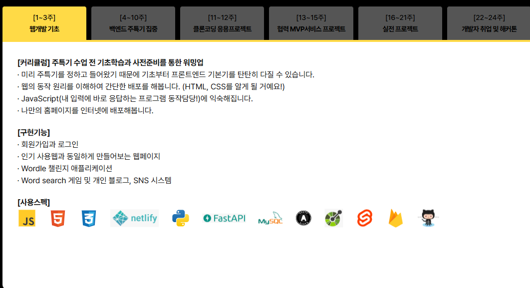 슈퍼코딩 웹개발자 부트캠프 주요 커리큘럼 소개